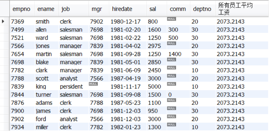 示例1:有个员工表emp,查询所有员工的平均工资