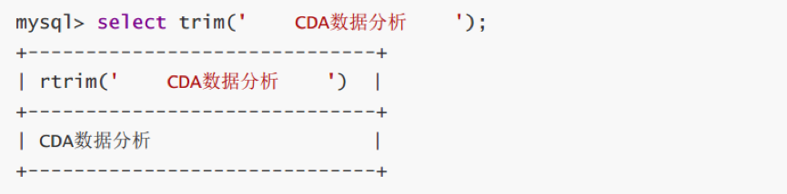 TRIM(str) # 返回删除了两边空格的字符串str