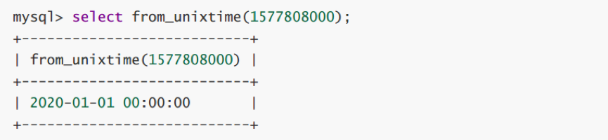 FROM_UNIXTIME(unix_timestamp) # 以'yyyy-mm-dd hh:mm:ss'或yyyymmddhhmmss格式返回时间戳的值
