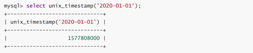 UNIX_TIMESTAMP([date]) # 返回一个unix时间戳(从'1970-01-01 08:00:00'开始的秒数