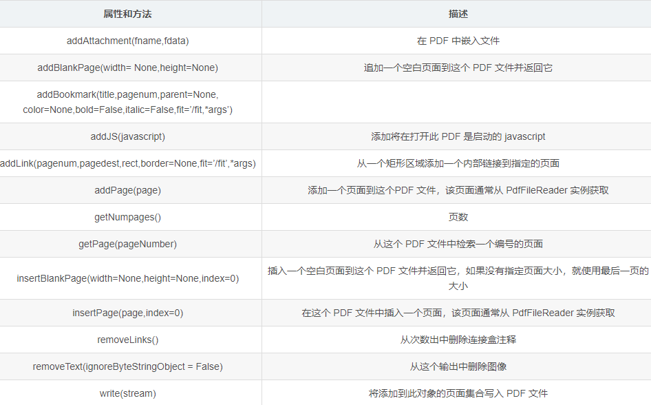 「PdfFileWriter 对象的属性和方法」