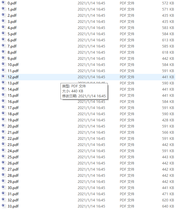 from PyPDF2 import PdfFileReader, PdfFileWriter file_writer = PdfFileWriter() for page in range(34): # 循环读取需要合并pdf文件 file_reader = PdfFileReader("D:\\pdffiles\\{}.pdf".format(page)) # 遍历每个pdf的每一页 for page in range(file_reader.getNumPages()): # 写入实例化对象中 file_writer.addPage(file_reader.getPage(page))