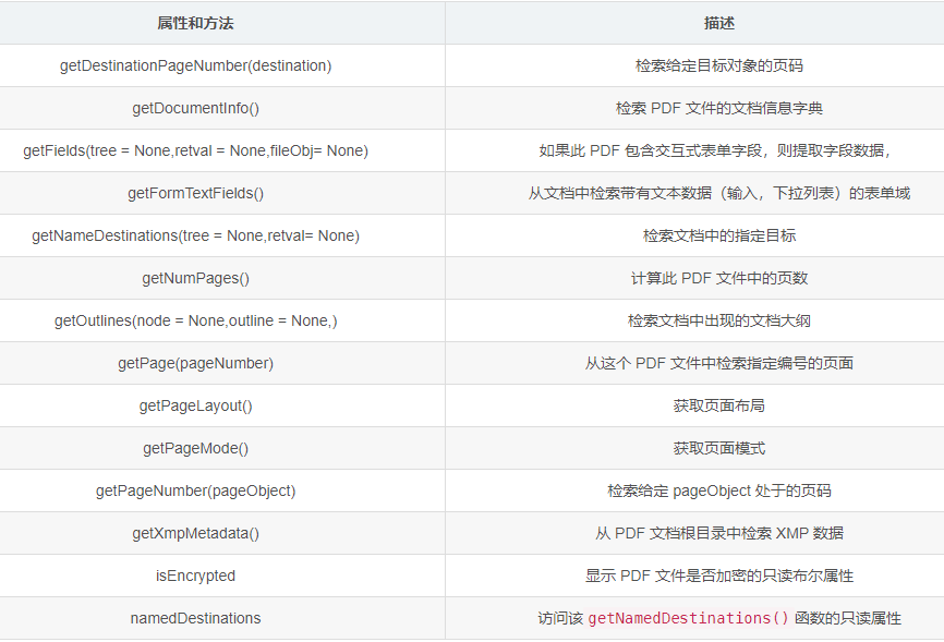 「PdfFileReader 对象的属性和方法」
