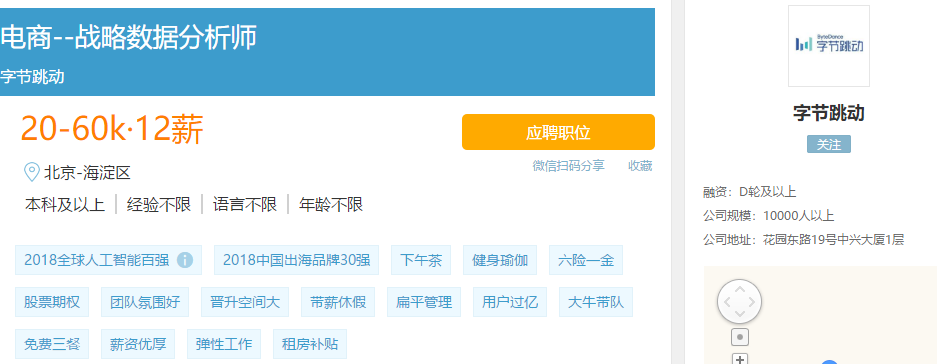 大家好,我有一个朋友学习 Python 已经三年有余了,目前就职于某互联网公司,担任数据分析师一职。Python 的应用方向有很多,爬虫开发、web后端、自动化运维等等,可为什么我偏偏选了数据分析呢?关于这个问题,有很多的朋友也私下问过我:“为什么自学3年Python,最后却成为了数据分析师?”我们随便打开一个求职网站一搜,本科以上,经验不限的岗位一搜一大把。对比其他应用方向,真的很难能在这么短的时间内就拿到这么高薪资。其他应用方向,web后端 python 干不过 Java,爬虫还各种风险,说不好明天就进去吃免费的午餐了。反观数据分析,还有哪种语言能干得过 python 的?没有吧,几乎没有可替代性。