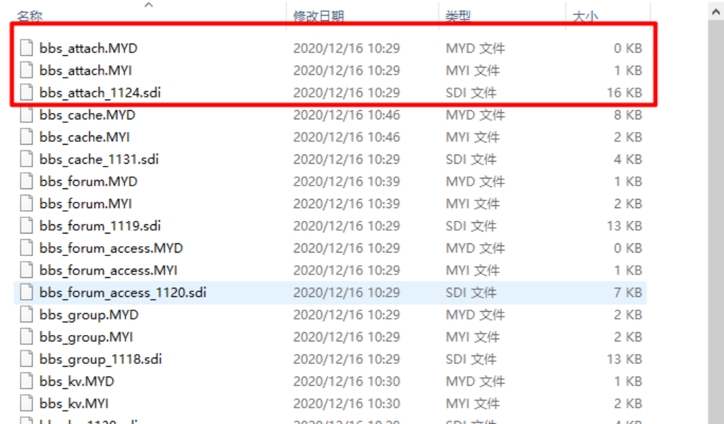 看到这里不知道大家有没有疑问:为什么看有的文章中也会有 frm 文件呢?但是在这里怎么没有呢?