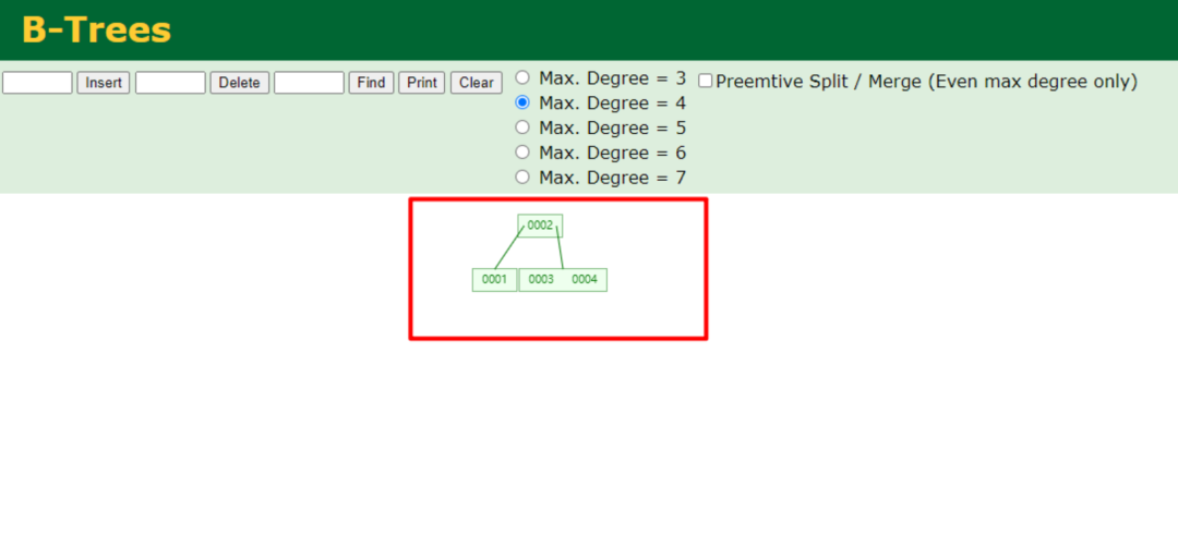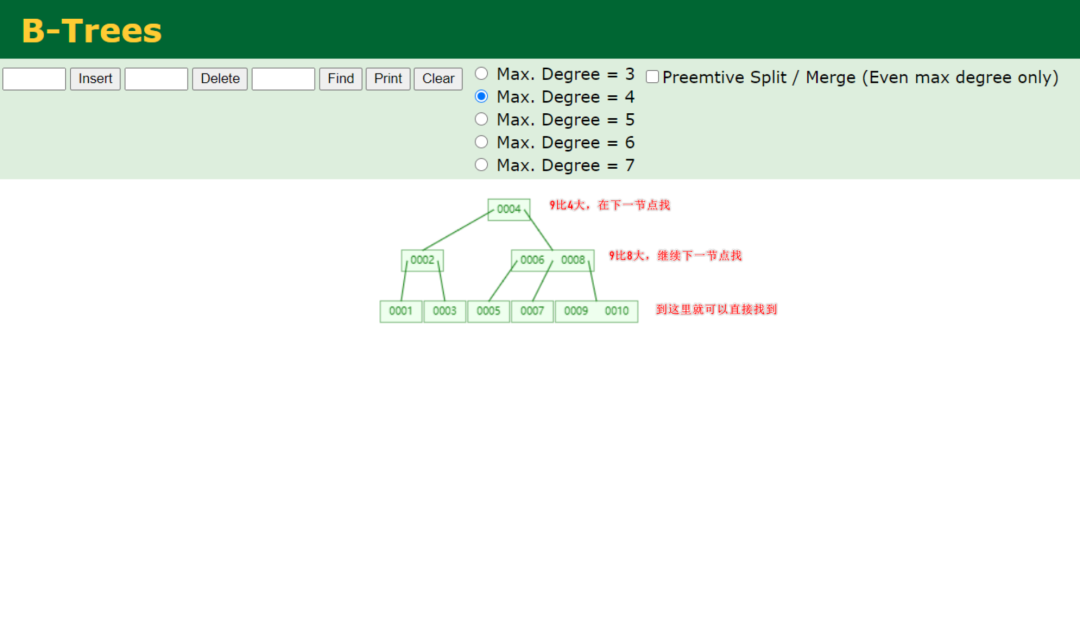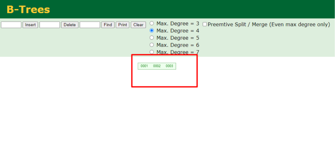例如现在这个值设置的是 4,那么在一个节点中最多就可以存储 3 条数据,设置为 5那就可以最多放 4 条记录。