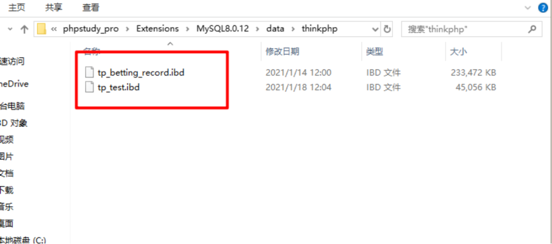 首先看一下 InnoDB 引擎下,创建表生成的文件,可以看到有两个 ibd 文件。