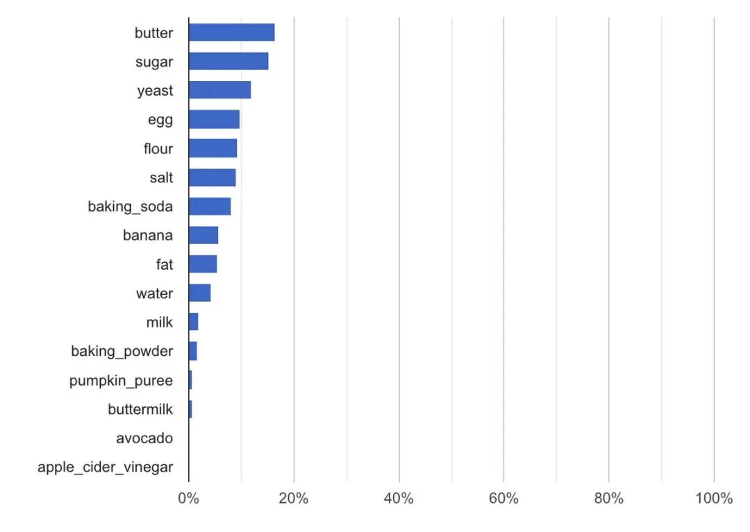 通过分析,Sara 进一步了解了 AI 模型在进行预测时的判断依据。结果显示,对于 AI 模型来说,烘焙配方中的每种成分,对于决策的重要性排名如下:当然,实际上各类甜点的配方是非常复杂的,以上指标也并不是固定不变的。比如,Sara 对某个“蛋糕”的配方预测结果进行分析,发现其中鸡蛋、黄油和小苏打是 AI 进行预测的重要判断指标。