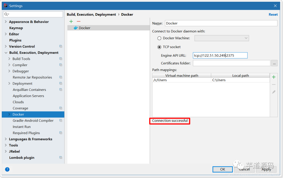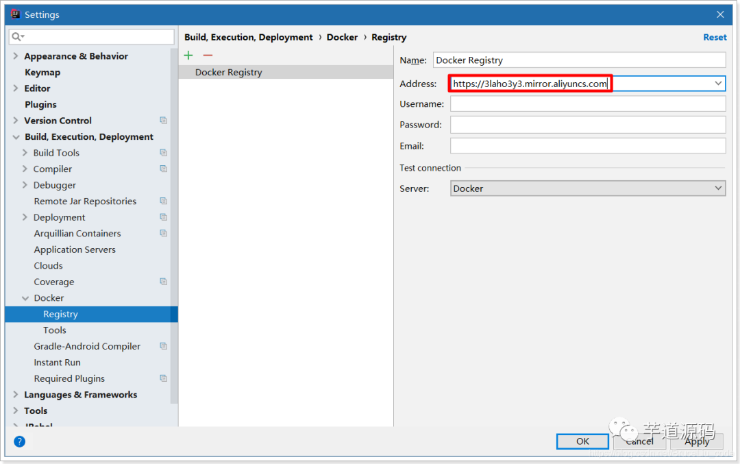 然后配置docker地址,在你的File | Settings | Build, Execution, Deployment | Docker