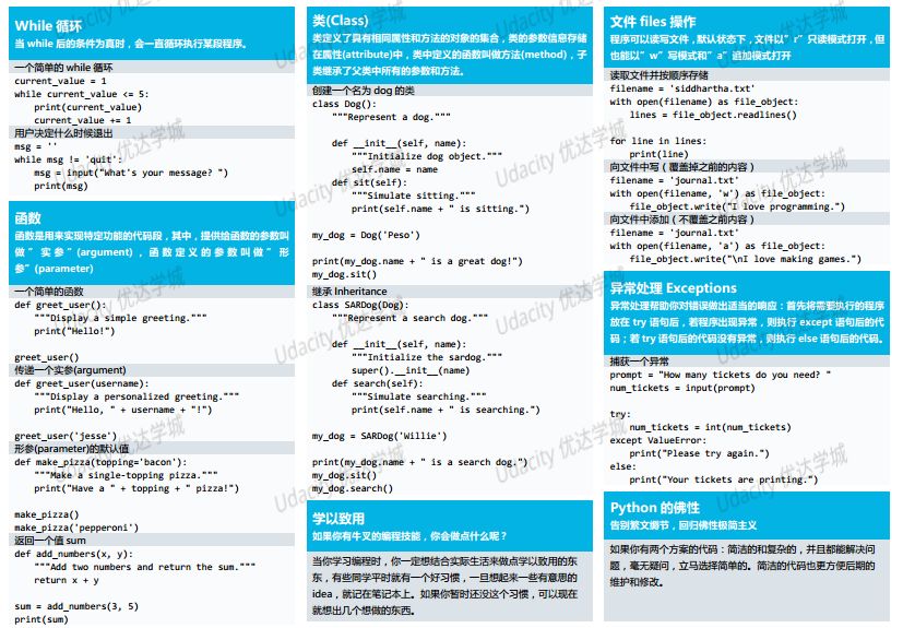 朋友们!经过优达菌业余时间的奋斗,终于把Python小抄全部汉化完成了!
