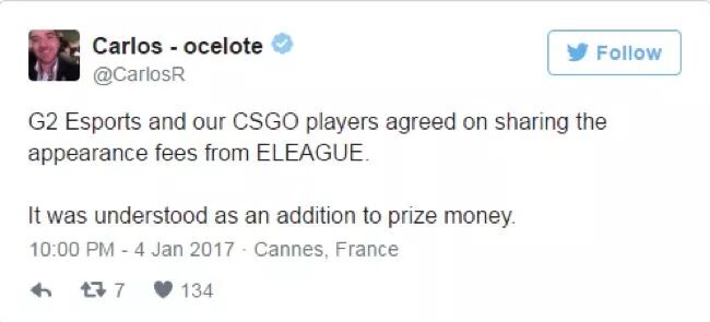去年,国际知名的CS:GO大赛ELEAGUE中,6支队伍状告主办方欠付每队3万美金出场费,成为一桩丑闻。