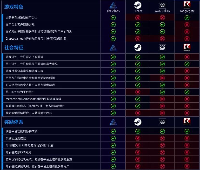 数字发行平台The Abyss Platform,直接叫板Steam。他们推出ABYSS代币来完善激励、推荐、拍卖体系。
