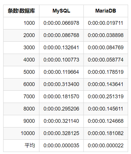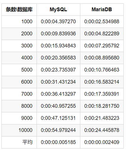 上面的测试结果,MariaDB 并没有绝对优势,甚至有时还比 MySQL 慢,但平均水平还是高于 MySQL。