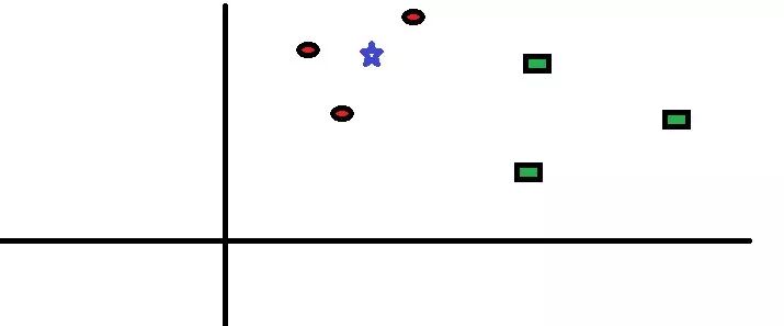 让我们通过一个简单的案例来理解这个算法。下图是红圆圈和绿方块的分布图: