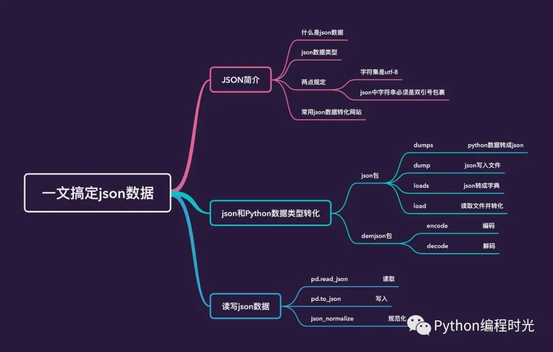 数据;其次,结合各种实际案例,将json和Python的各种数据类型,尤其是字典类型进行了转化;最后,重要讲解了json数据的读取、写入和规范化的操作。