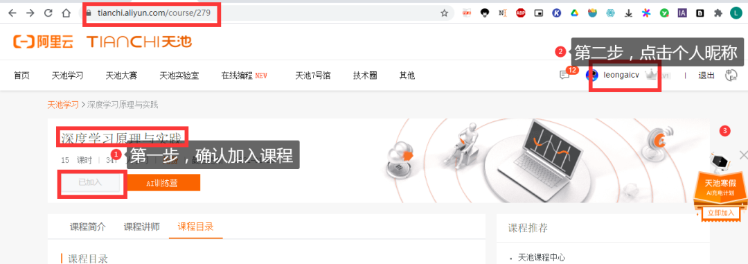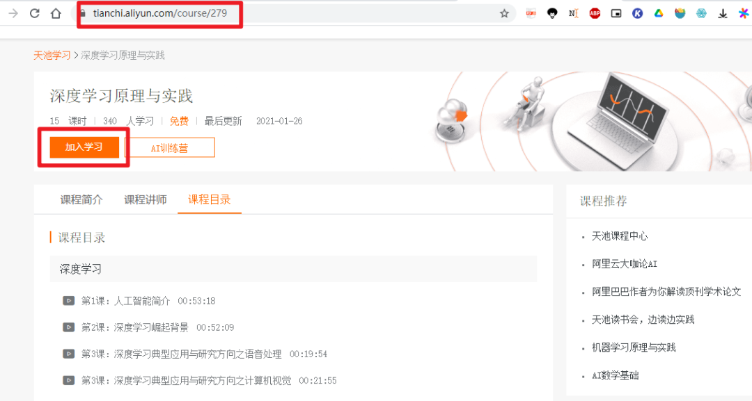 浏览器打开下方链接,点击加入学习,即可免费参加深度学习课程