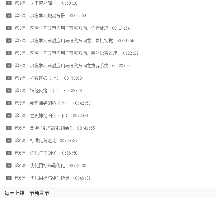 本课程是有三AI与阿里天池联合推出的深度学习系列免费课程, 课程内容将包括人工智能与深度学习发展背景,深度学习典型应用,卷积神经网络,循环神经网络,生成对抗网络,深度学习开源框架等内容,预计共40余课时。课程仍在更新中,现有课程如下: