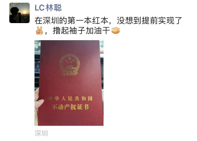 ( 林聪在深圳买了第一套房)