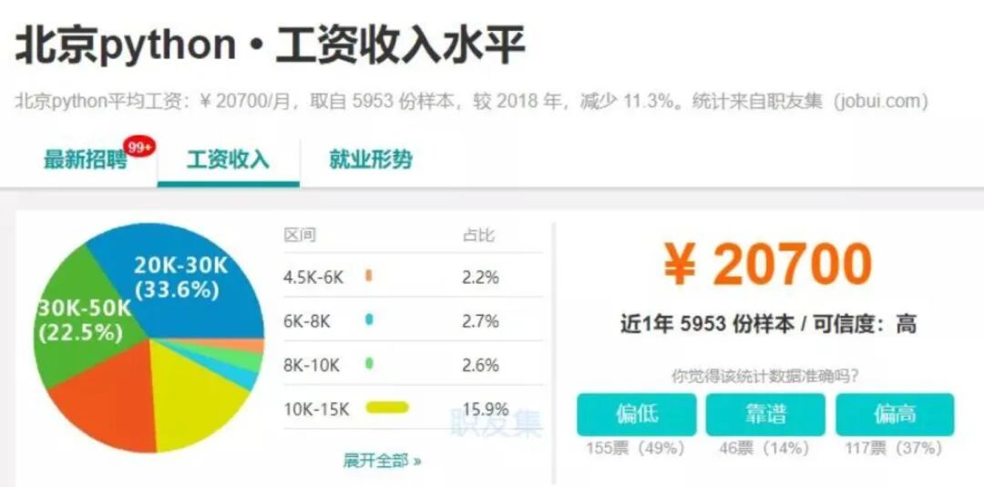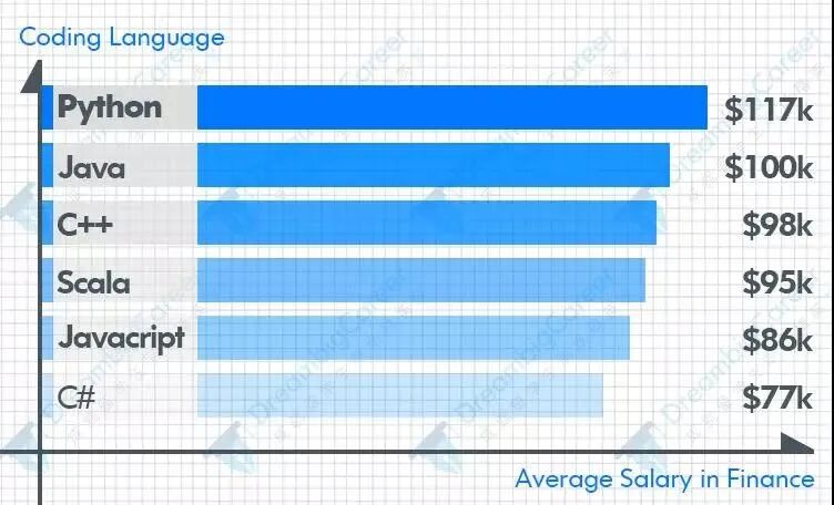 调查显示,掌握Python的人平均薪资是金融行业中最高的,高达117K。这也从侧面说明,想职场拿高薪,就一定要趁早学Python!