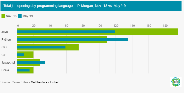 基于对庞大数据的分析要求,Python一举登顶投行、四大、咨询公司最偏爱的语言。