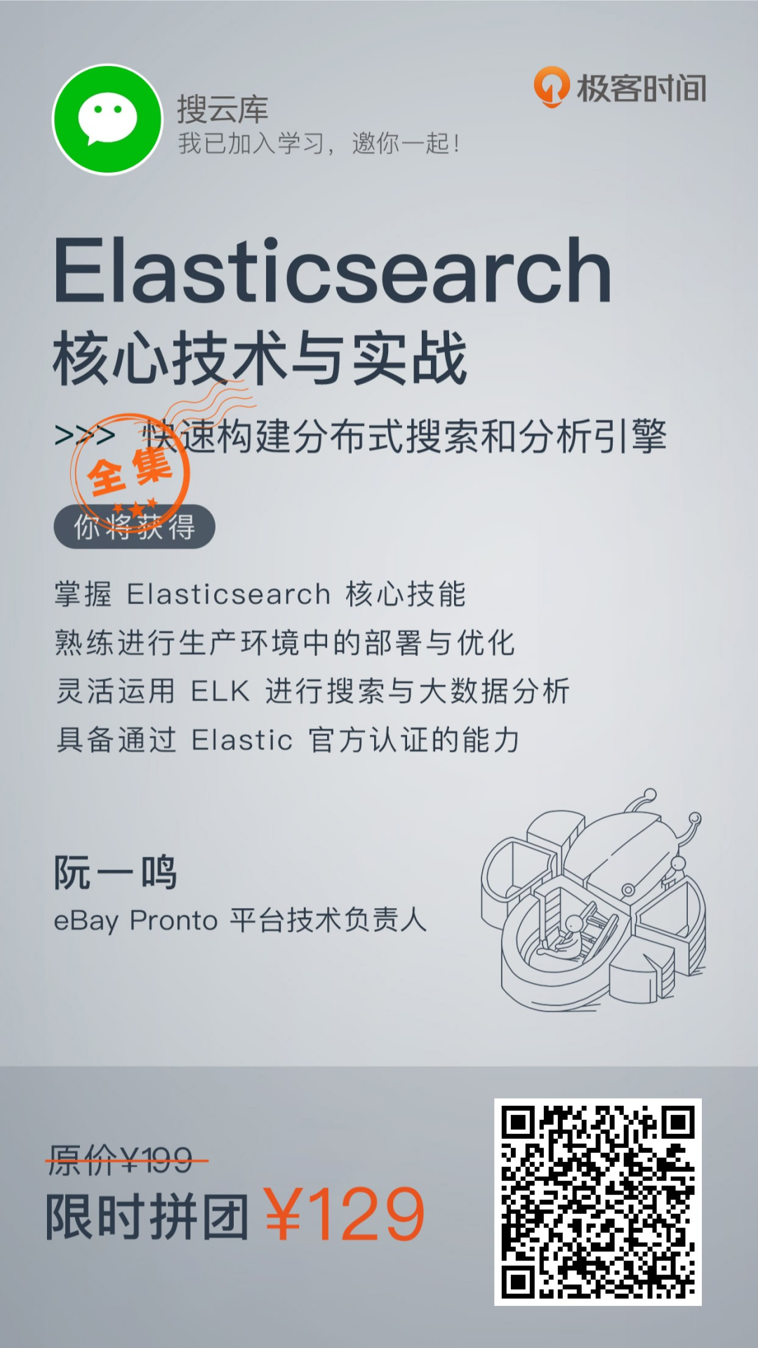最早,听过他在 Elastic 中国开发者大会的分享,讲得非常不错。所以,那会儿得知他出了个 Elasticsearch 视频课,我第一时间就订阅了。跟着学下来,感觉收获很大,帮我解决了工作中的不少问题,上面那张图就是,磊哥我从课程里搬运过来的。