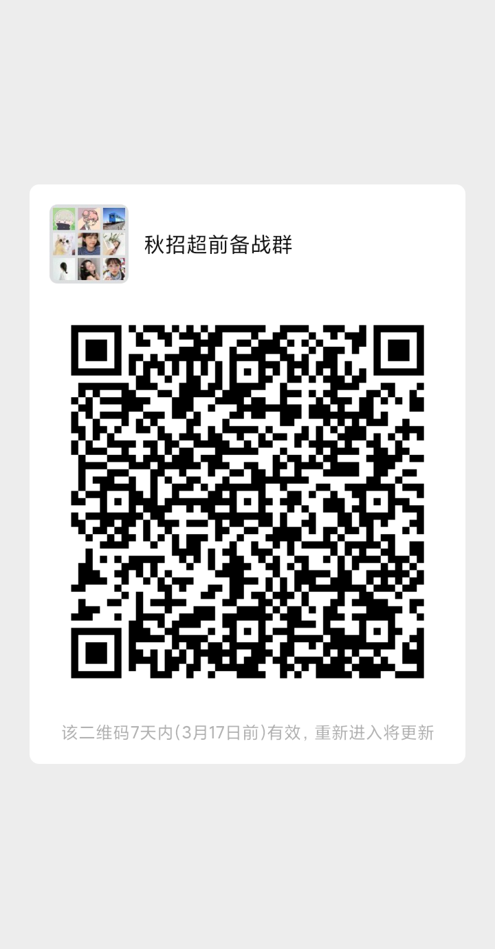 这份礼包也将在《九章算法班》首节试听课中免费送出,另外,为了让大家及时获取求职第一手信息,我们拉了一个求职超前备战群,将为大家带来以下福利: