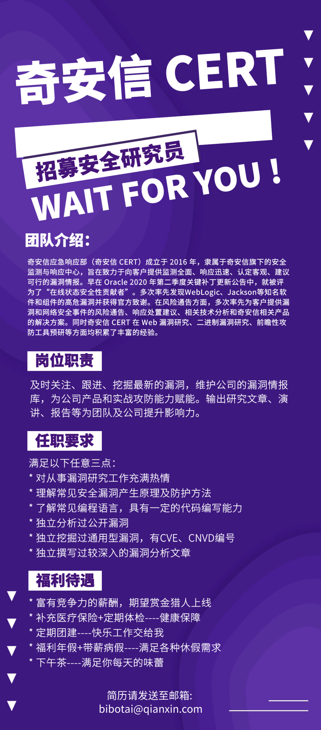 点击阅读原文 奇安信CERT长期招募安全研究员