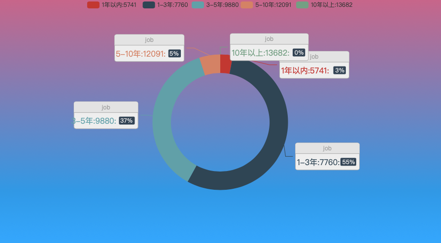 可以看到,15K以上的薪资还是占了16%以上,而占比最大的薪资区间则是7-9K。