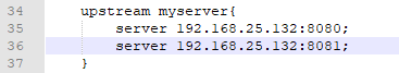 准备:配置两个 Tomcat,端口分别为 8080 和 8081,都可以访问,端口修改配置文件即可。新建文件内容分别添加 8080!!!和 8081!!!