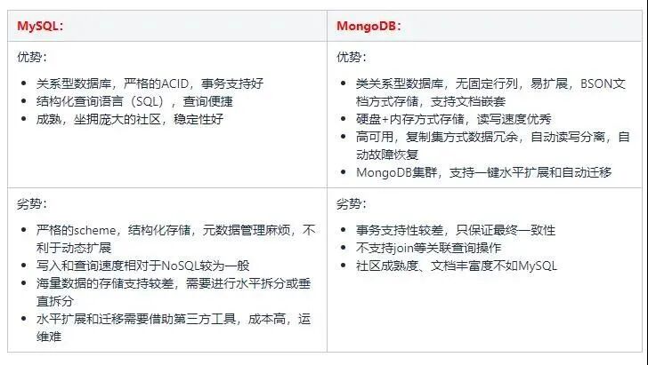 团队在数据库选型设计时,对比了多种主流的数据库,最终在 MySQL 和 MongoDB 两种存储之进行抉择。