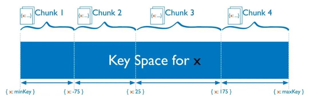 MongoDB 数据是存在collection(对应 MySQL表)中。集群模式下,collection按照 片键(shard key)拆分成多个区间,每个区间组成一个chunk,按照规则分布在不同的shard中。并形成元数据注册到config服务中管理。