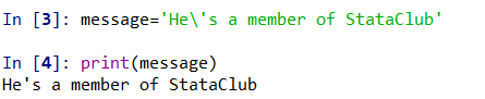 单引号位于两个双引号之间,因此Python解释器能够正确地理解这个字符串:He's a member of StataClub。