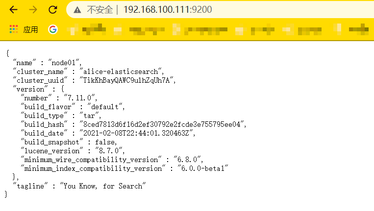 [esuser@node01 bin]$ ./elasticsearch -d 稍等片刻,再次访问地址,还是相同结果