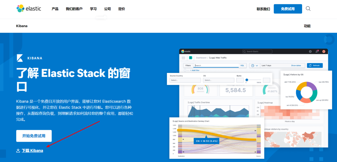 Kibana 是一个免费且开放的用户平台,能够让我们对 Elasticsearch 数据进行可视化,这里我们也一并将其下载到本地