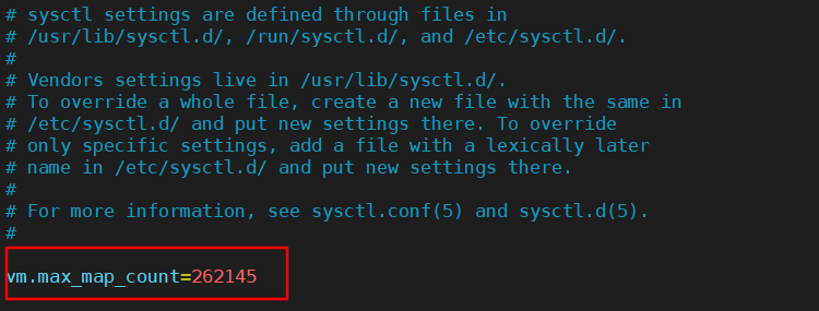 修改 /etc/sysctl.conf 增加 vm.max_map_count=262145 修改完成之后,使用sysctl -p命令刷新一下,再次切换到 esuser进行启动即可。