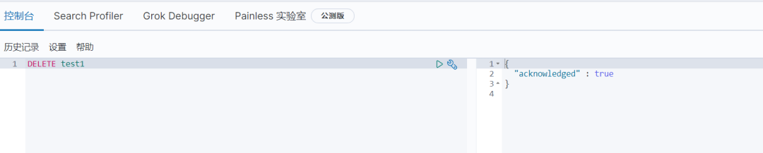 根据网址:ip:5601打开我们的 kibana 的页面,进入到开发工具栏,在 Console 中输入 :