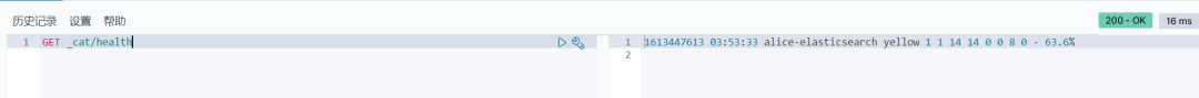 其他命令 我们可以通过GET _cat/health来获取集群的一个健康状态 同时观察