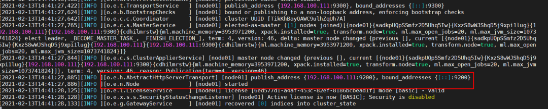 启动方式1 我们在bin目录下直接./elasticsearch,可以看到运行结果