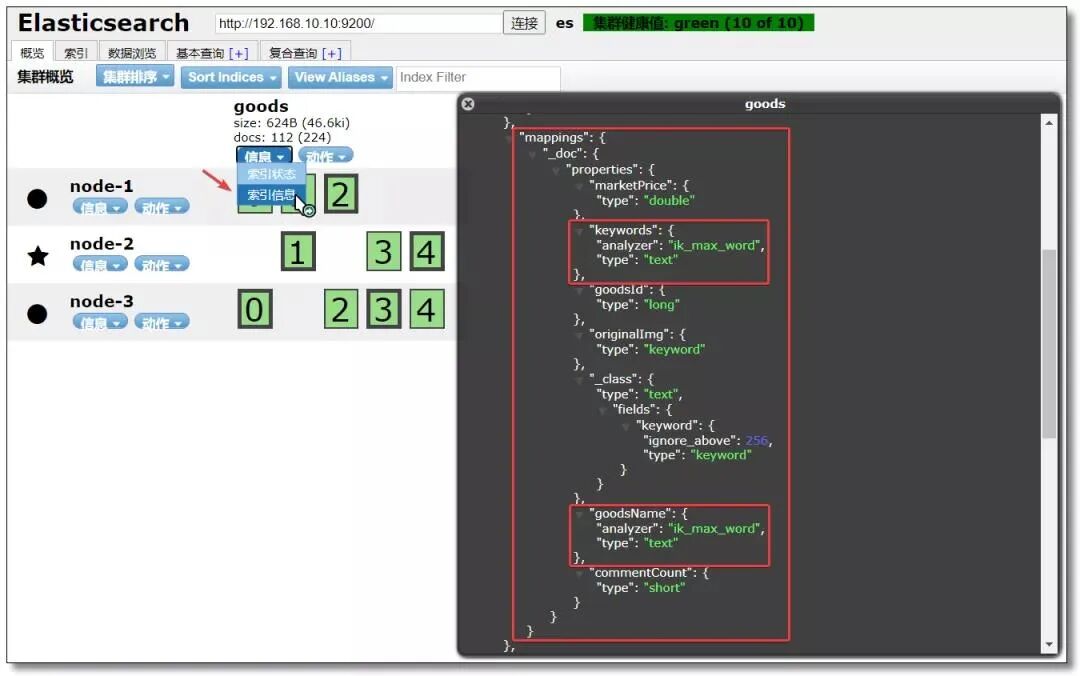 安装流程这里不过多赘述,本文使用 Elasticsearch 集群环境,已安装好 IK 中文分词器。