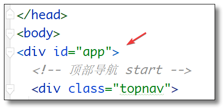 // element 的简写,挂载元素,绑定 id 为 app 的 html 代码片段