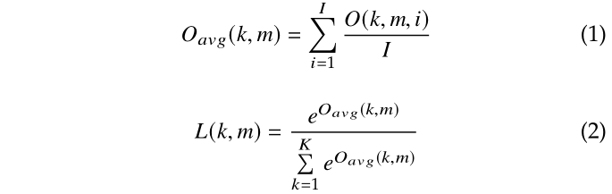 然后利用式(1)来求得每类图像的输出平均值 Oavg,再使用 softmax 来计算概率情况。以概率分布表示该类与根节点下面子类的相似程度。对于第 m 类,我们按照其概率分布进行排列,得到公式(3)。