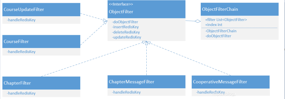 - MySQL表的同步,采用责任链模式,每张表对应一个Filter。 例如zvsync中要用到的类设计如下:
