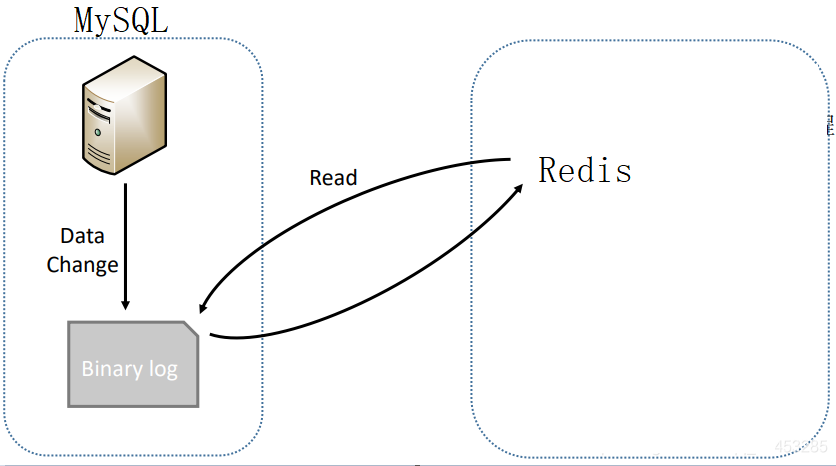 - 我们方案2也是如此,就是在概念上把主服务器改为MySQL,把从服务器改为Redis而已(如下图所示),当MySQL中有数据写入时,我们就解析MySQL的Bin log,然后将解析出来的数据写入到Redis中,从而达到同步的效果