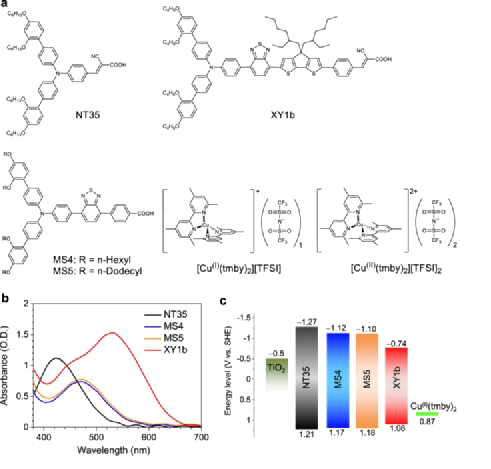 Dan Zhang, et al. A molecular photosensitizer achieves a Voc of 1.24 V enabling highly efficient and stable dye-sensitized solar cells with copper(II/I)-based electrolyte, Nature Commun. 2021, 12, 1777