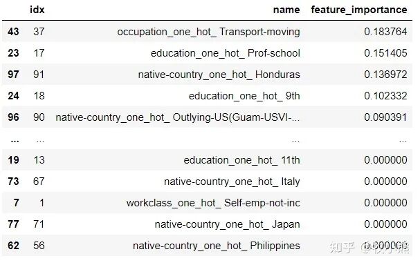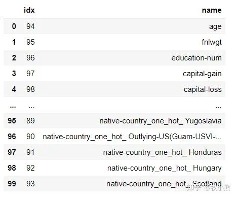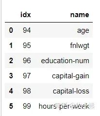 for attr in temp['binary' ]: temp_df = {} temp_df['idx' ] = attr['idx' ] temp_df['name' ] = attr['name' ] df_importance = df_importance.append(temp_df, ignore_index=True ) df_importance