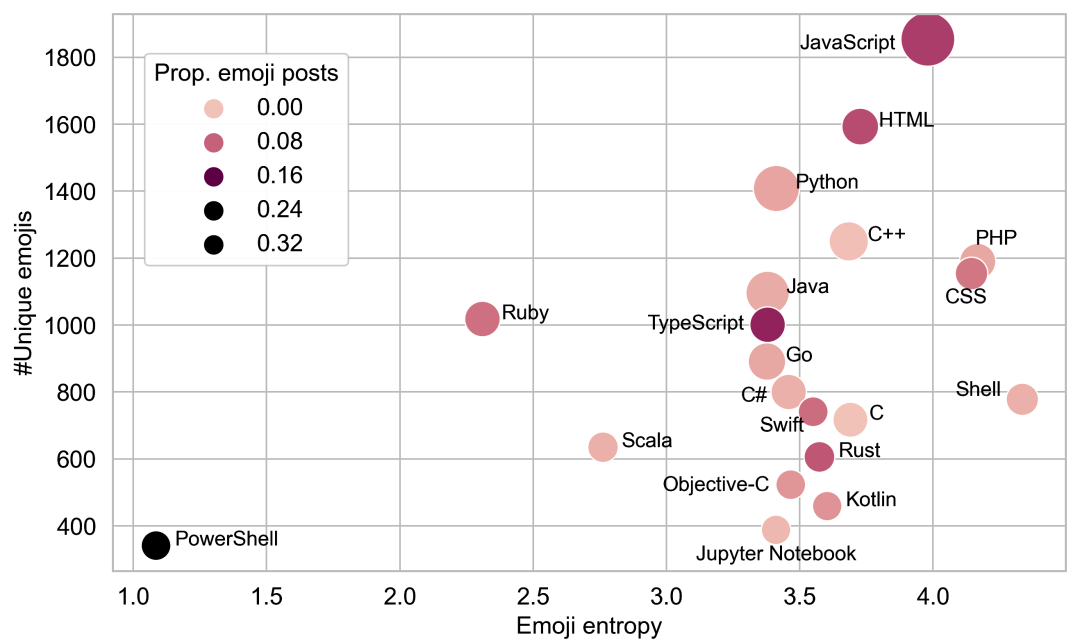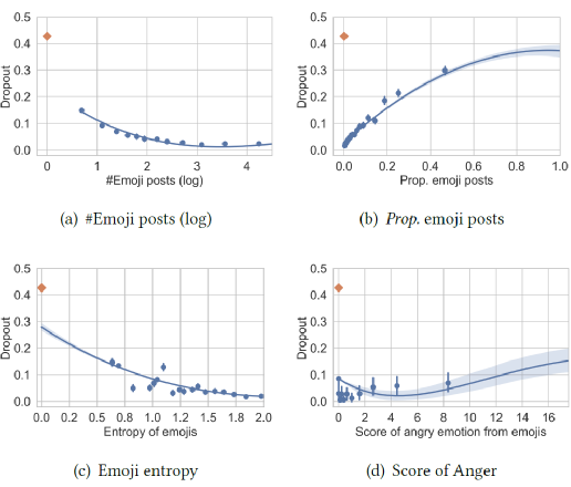 预测远程办公员工的满意度 平均工作时间越长或者post板块应用多的人,使用emoji表情相比其他开发者越多,同时使用emoji表情的比例也越高,相比之下,使用working days的开发者使用emoji表情的比例较低。使用emoji表情的比例越高,说明开发者整体发言或者发帖数量也会减少。活动水平或工作量的增加可能与工作热情或压力有关,而减少则可能反映出工作倦怠。使用push板块的开发者使用更少的表情符号,而在issues,pull requests,comments板块有更多活动的开发者也会使用更多的表情。获取更多评论的开发者也会使用更多的表情,因为在评论区,开发者更倾向于使用标签表达对合作者的赞赏和鼓励。表情的数量和比例反映了开发者的工作状态,进一步的,研究人员通过表情符号的使用捕捉与工作相关的开发者特征,并用来预测工作结果。研究人员研究了使用表情符号作为一个因素来观察与员工情绪状态和心理健康相关的结果,如激情、抑郁和倦怠,但是这些结果很难在规模上精确衡量。因此,该项研究中选择了一个相关且容易衡量的事件作为预测目标,即在未来一年,开发者是否会在GitHub上不进行任何活动,即退出平台的使用。研究人员在更细的粒度上描述开发者使用表情符号的情况,用于研究表情符号是否可以帮助预测开发者的退出。研究提取了2018年的表情符号使用特征,并使用它们来预测2018年活跃的开发者是否会在2019年退出GitHub上的工作活动,主要定义为零工作日或每日工作小时数。由于表情符号的使用与活动水平高度相关,并且两者都与编程语言相关,研究人员在预测任务中对这些额外的因素进行了控制。研究结果表明,如果开发者在他们的post中使用表情符号,他们就不太可能中途退出开发平台,而且当他们撰写更多,但是数量合理的表情符号的post时,退出平台使用的风险会进一步降低。然而,当开发者的post中含有表情符号的比例很高时,相关度会出现不同的变化,因为这些用户可能对表情符号很着迷,表现出了一种潜在的痴迷的激情。 如上图所示,表情符号使用的多样性,主要体现在表情符号的数量和表情符号的熵,都会对开发者中途退出开发平台产生负向影响。表情符号熵越大,开发者退出开发平台的风险越低。表情符号的多样化使用可能表明用户处于良好的情绪状态,并且沉迷或疲劳的风险较低。通过表情符号表达的情绪也显示出与用户中途退出具有很有趣的关系,积极情绪、消极情绪、悲伤和焦虑的情绪得分大多呈负相关,而愤怒的情绪得分则呈正相关。这表明,使用表情符号表达这些情绪,即使是消极的情绪,都能降低开发者退出开发平台的风险。不过,出去研究结果中的这些异常值,研究结果中整体显示的开发者的情绪状态和心理健康与退出开发平台之间呈正相关关系。总体来说,这项研究表明,开发者使用表情符号,本质上是表达情感的符号,可能是他们在GitHub上投入工作的一个线索,因为使用表情符号的人不太可能退出这个平台。这一发现有助于开发基于表情符号的预测远程工作者工作满意度的工具,或检测愤怒、焦虑和抑郁迹象的系统,可以用于直接对那些正在努力跟上工作进度的员工提供及时的帮助。此外,研究人员认为他们的工作可以激励公司设计提高远程办公人员的幸福感和工作满意度的策略,例如鼓励他们使用表情符号表达积极和消极的情绪。研究人员说,在他们正在进行的研究中,正在寻找表情符号使用与工作相关结果之间的因果关系,我们正在研究是否可以将表情符号用作一种工具,以帮助提高远程办公人员的办公表现,甚至于在他们想要退出时,及时的挽留。参考文献:1.Xuan Lu, Wei Ai, Zhenpeng Chen, Yanbin Cao, Xuanzhe Liu, and Qiaozhu Mei. 2021. Emojis Predict Dropouts of Remote Workers: An Empirical Study of Emoji Usage on GitHub. In Proceedings of ACM Conference (Conference’17). ACM, New York, NY, USA, 11 pages. https://doi.org/10.1145/nnnnnnn.nnnnnnn2.https://techxplore.com/news/2021-03-patterns-emojis-dropout-remote-workers.html