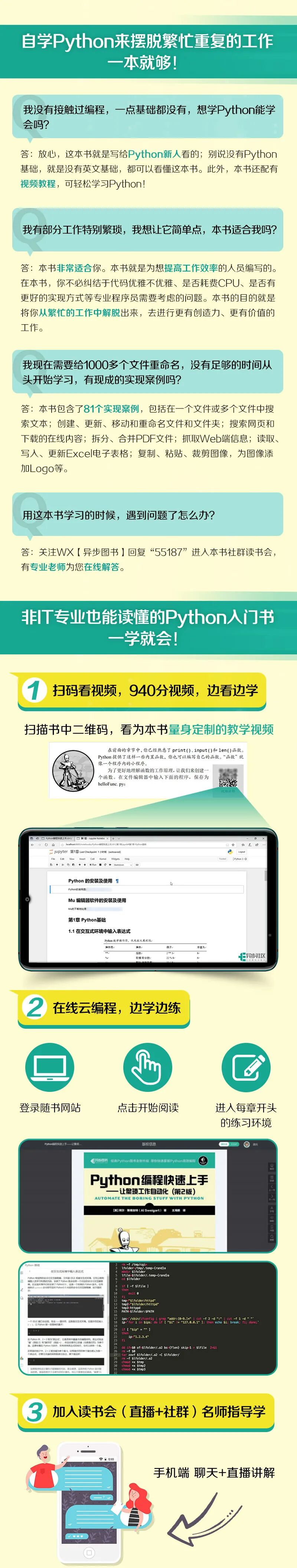 这本书的目的就是为零基础、从未接触过Python的职场人士,提供各种让工作高效、自动化的工作方法。