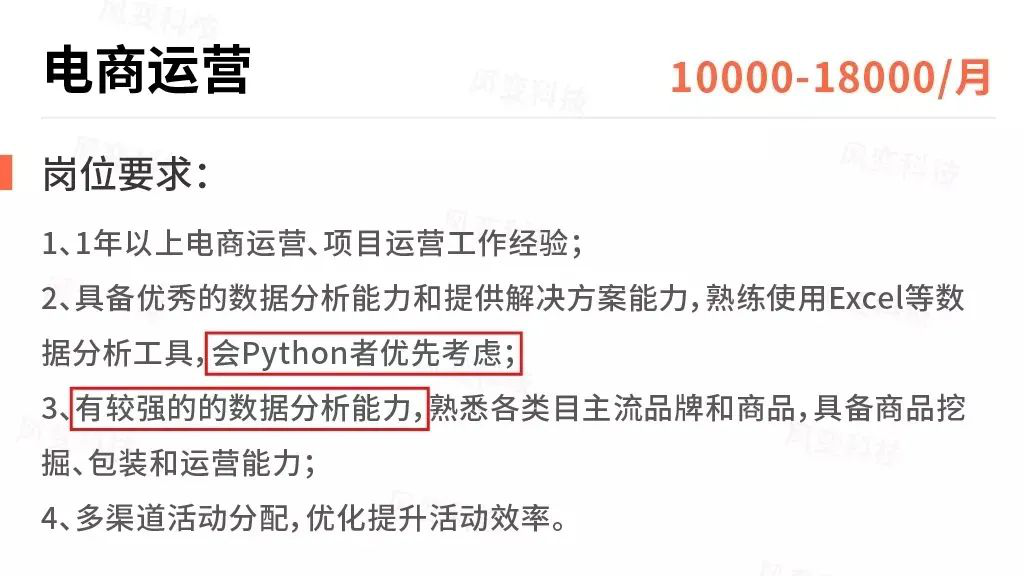 一年之后的莹莹,凭借超高工作效率,成功担任了部长职位,继续为她喜欢的工作发光发热。还有平时老师布置作业的时候,当别人还在焦头烂额全网找数据,莹莹自己用Python,只需要轻轻一点,所有相关的资料就都自己跑出来了。大四写论文的时候,她自己爬了全网的文献资料,在我们还在各大网站下载文献的时候,她就已经开始写她的初稿内容了而且文献资料又全面又完整,老师都忍不住夸赞她,最后还拿了优秀毕业生的称号。在大四面临毕业找工作的时期,从网申投简历,到笔试面试,Python都有帮助到她。例如,莹莹用Python爬取了特别多的招聘信息,发现了很多我们都不知道的招聘信息。并且她看到很多热门有前景的岗位,现在的招聘JD上都明确的写“会Python优先”她立马就把自己会Python这一點,写进了简历里。明明大家都是一起投递的简历,但她收到面试的数量却是我们的两三倍。在面试之前,她还运用Python爬取了之前公司某活动的数据,并给出了详细的分析报告。在面试的时候,面对的竞争者有的会写写文案,有的会拍视频,甚至还有留学归来的同学讲的一口流利英语。
