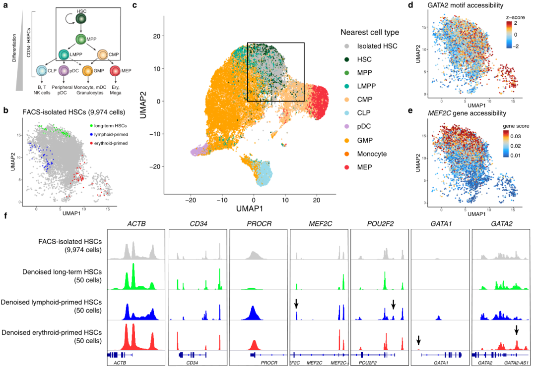 图5. AtacWorks可识别与谱系启动的造血干细胞相关的差异性调控区域,来源:Nature Communications