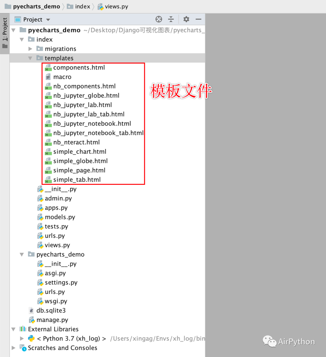 将虚拟环境中 pyecharts 的模板文件拷贝到项目的模板文件夹下